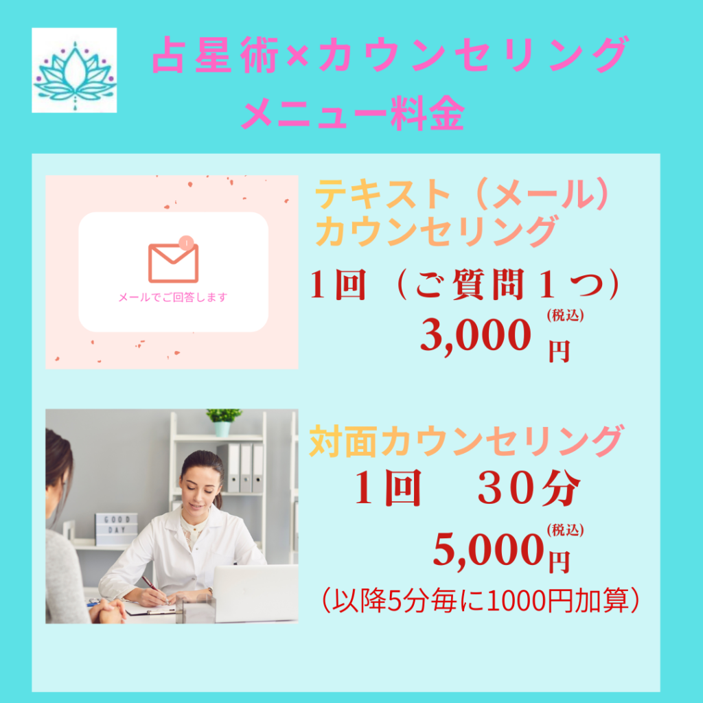 占星術と心理カウンセリングの2つのサービスを組み合わせての生き方の対処法を一緒に考え、最良の処方箋をお届けします。